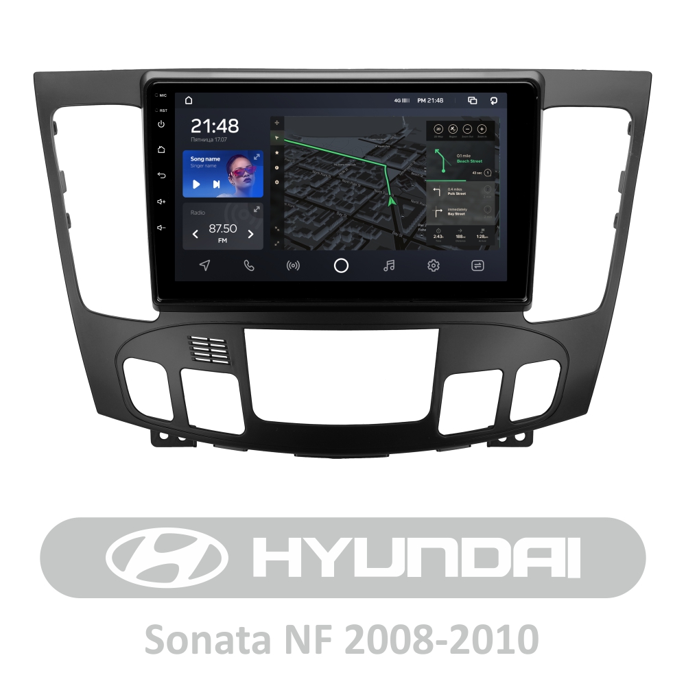 Штатна магнітола AMS T910 6+128 Gb Hyundai Sonata NF 2008-2010 (F2) 9"