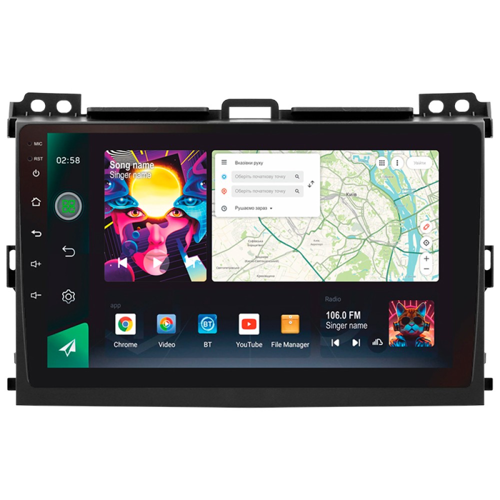 Автомобільна штатна магнітола SIGMA PRO 98128 ANDROID 12 8+128 Gb 4G DSP Toyota Land Cruiser Prado 3 J120 2004-2009 (F1) (A) 9" 2k