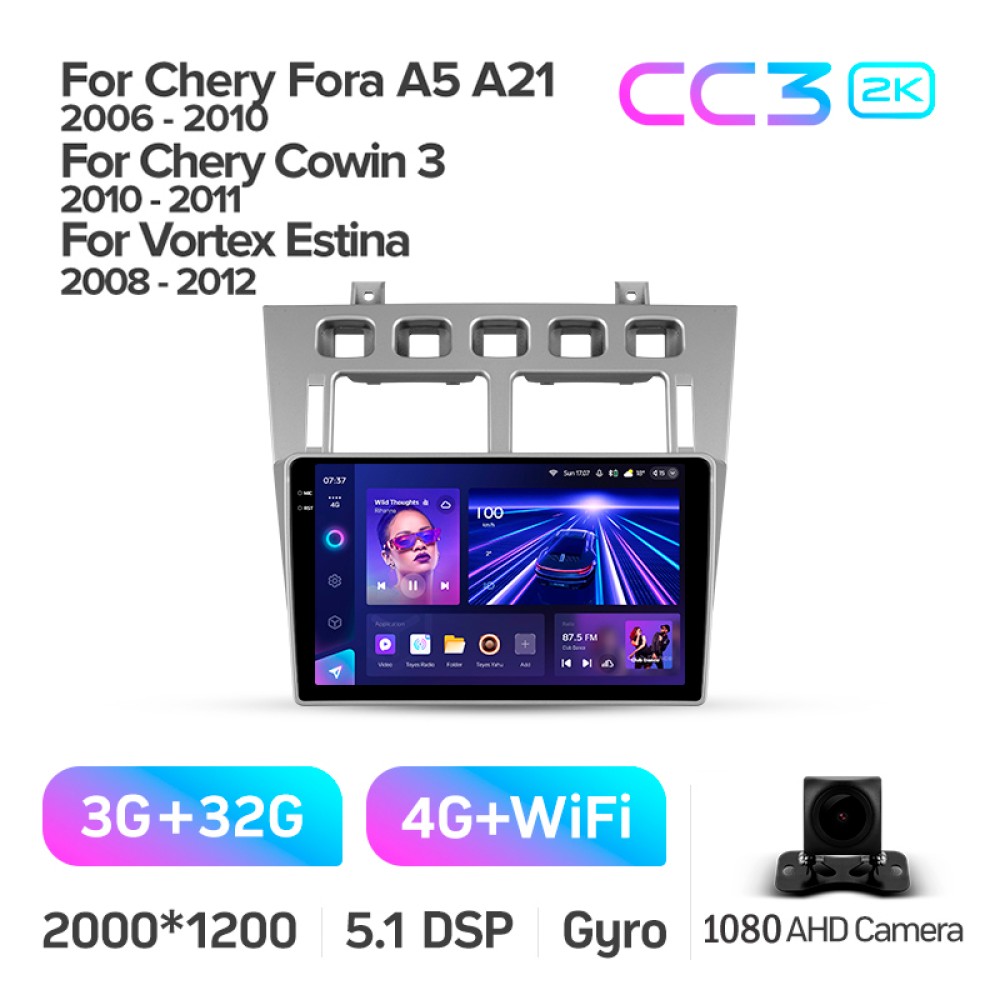 Штатна магнітола Teyes CC3 3+32 Gb Chery A5 A21 2006-2010 Cowin 3 A21 2010-2011 Vortex Estina 2008-2012 9" 2k