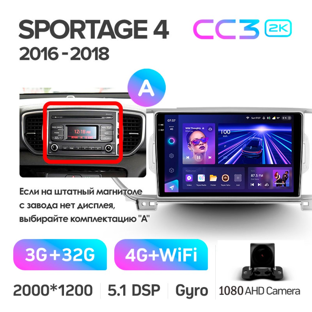 Штатна магнітола Teyes CC3 3+32 Gb Kia Sportage 4 QL 2016-2018 (KX5 A) 9" 2k