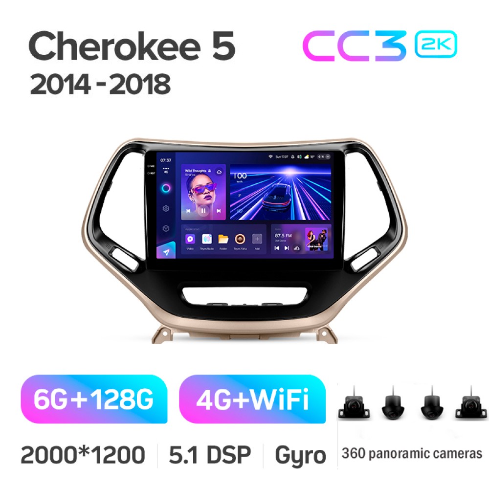Штатна магнітола Teyes CC3 6+128 Gb з коловим оглядом 360° Jeep Cherokee 5 KL 2014-2018 10" 2k