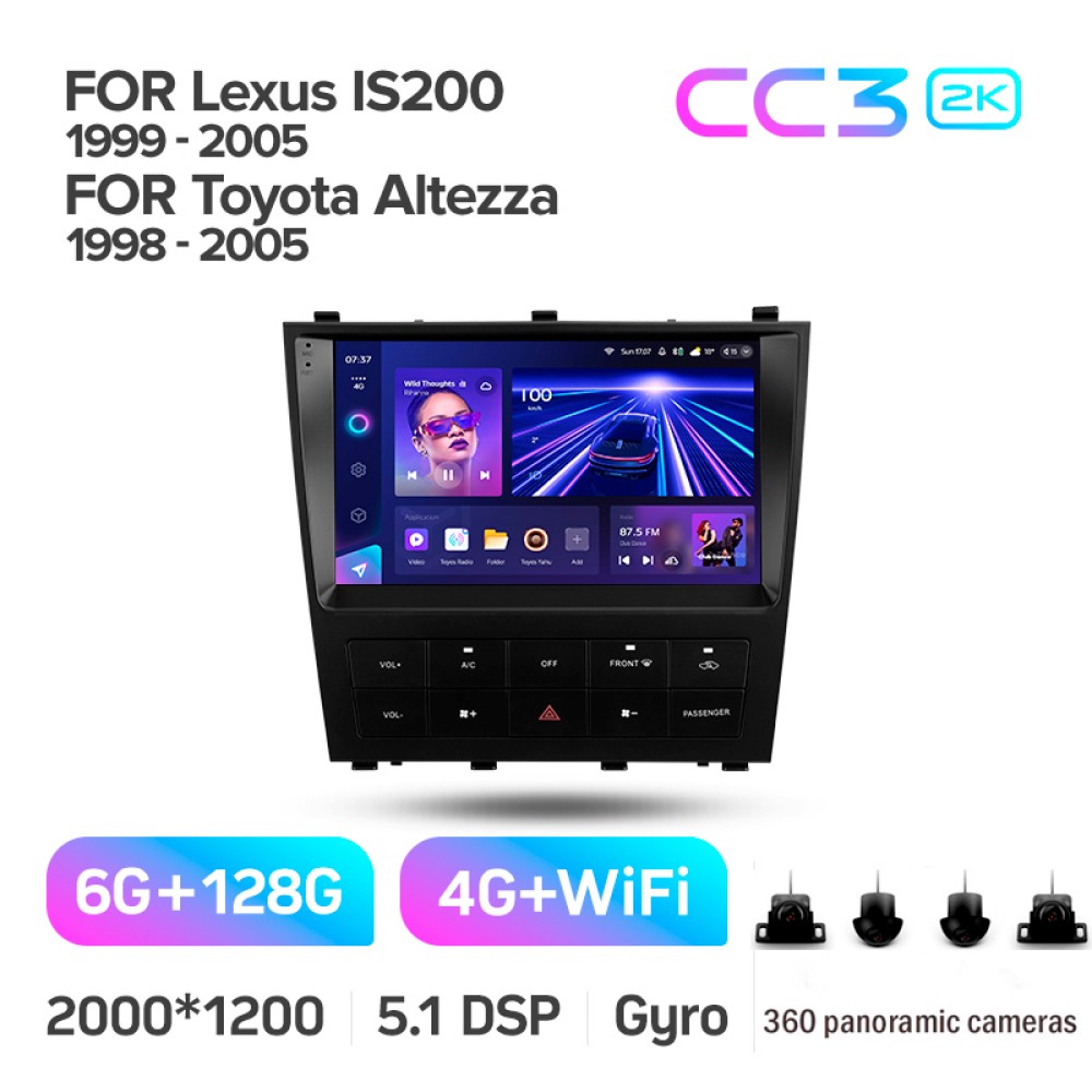 Штатна магнітола Teyes CC3 6+128 Gb з коловим оглядом 360° Lexus IS200 XE10 1999-2005 For Toyota Altezza XE10 1998-2005 9" 2k (L3)