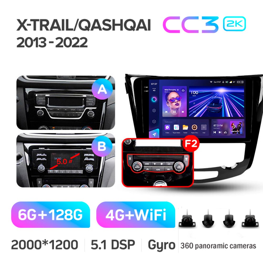 Штатна магнітола Teyes CC3 6+128 Gb з коловим оглядом 360° Nissan X-Trail X Trail 3 T32 2013-2017- (F2) Automatic air conditioning (A) 10" 2k