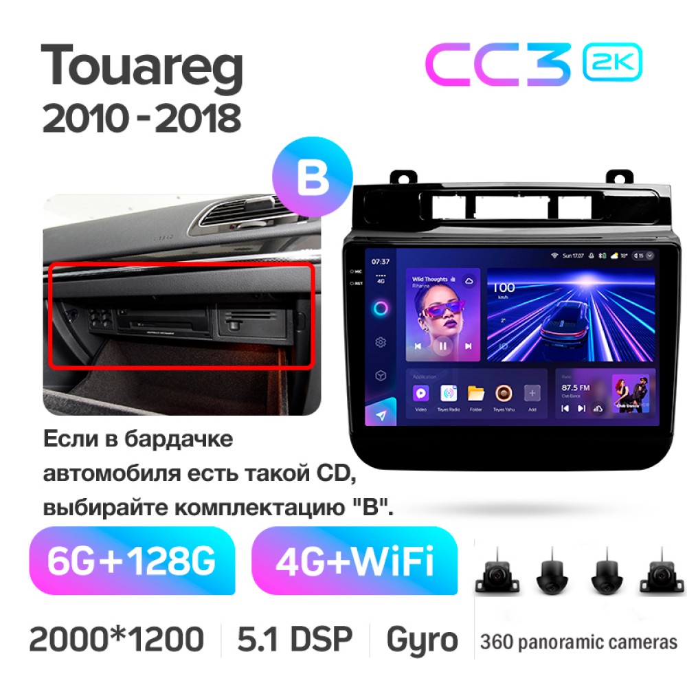 Штатна магнітола Teyes CC3 6+128 Gb з коловим оглядом 360° Volkswagen Touareg FL NF 2010-2018 (B) 9" 2k (L3)